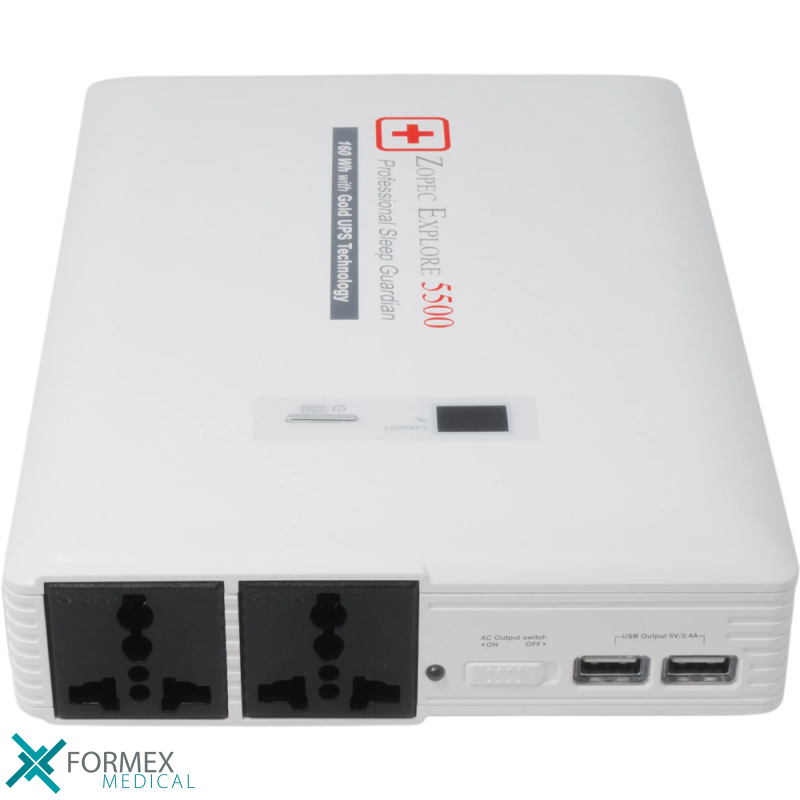 Versatile UPS battery with 110V AC outlet and double conversion. At 3 lbs, ideal for CPAP with heated humidification.